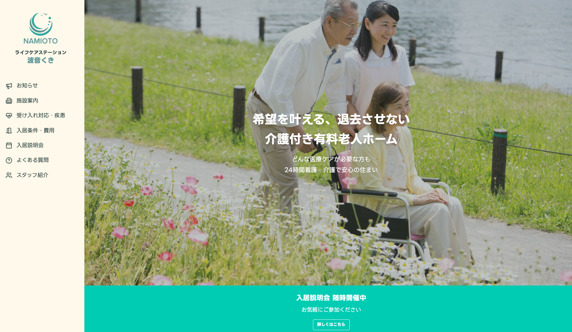 入居相談・施設見学を随時受け付けております。お気軽にお問い合わせください。